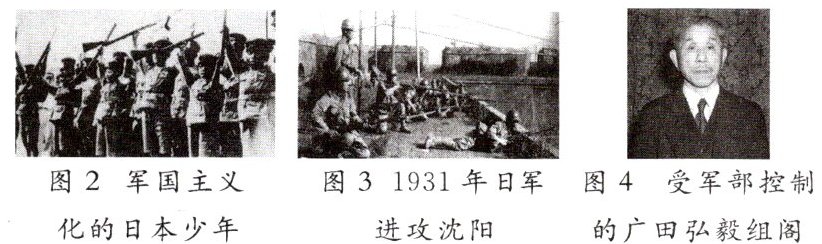 (2) 材料二中图 2 日本军国主义化的时代背景是什么?图 3 反映了近代日本侵华的哪一事件?图 4 事件表明了什么?