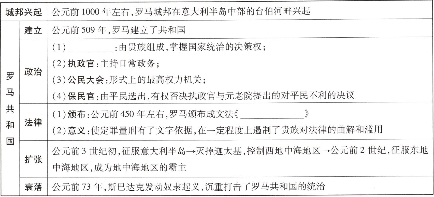 | |法律|(1)颁布:公元前450年左右,罗马颁布成文法《____》