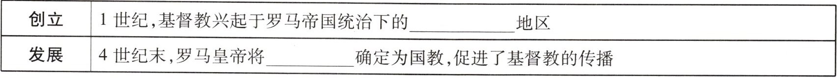 |考点1 基督教的兴起|创立:1世纪,基督教兴起于罗马帝国统治下的______地区