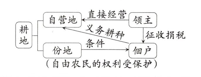 |土地|耕地分为领主的“自营地”和佃户的“份地”。庄园周围的林地、荒地等被称为“共用地”,全体佃户共同使用