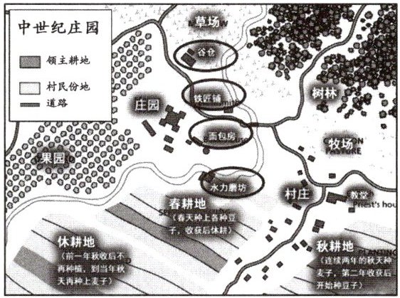 (3)中世纪西欧庄园是一个独立的自给自足的经济和政治单位。