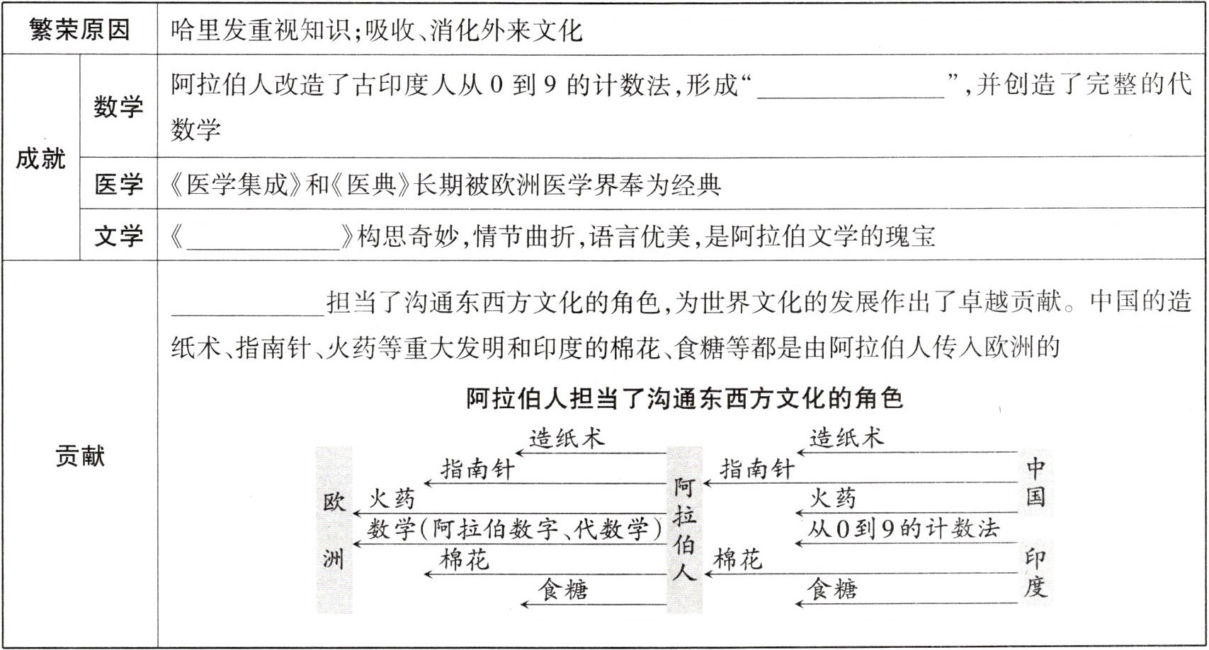 |考点3 阿拉伯文化|繁荣原因:哈里发重视知识;吸收、消化外来文化