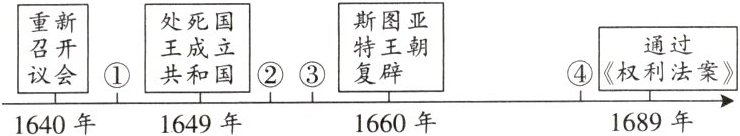 4. (2023·重庆)厘清历史时序是学习历史的一种基本方法。下图为英国资产阶级革命时序示意图,其中“光荣革命”应该位于图中的( )
