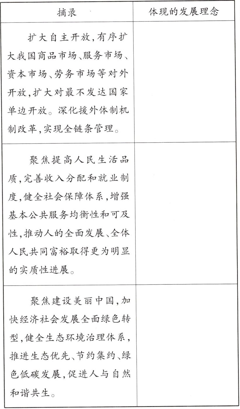 8. (简要回答题)下表是《中共中央关于进一步全面深化改革 推进中国式现代化的决定》部分摘录。请你运用所学知识完成下面的表格。