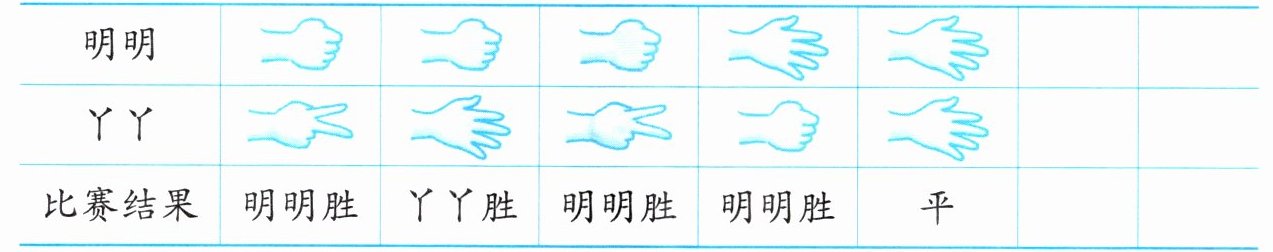 5. 下面是明明和丫丫玩“石头、剪子、布”游戏的记录。