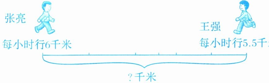王强的速度是每小时$5.5$千米,行走时间同样是$2.5$小时,王强走的路程为:$5.5×2.5 = 13.75$(千米)