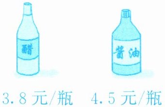 5. 聪聪买了3瓶醋、2瓶酱油,他给售货员阿姨25元钱,应该找回多少元钱?