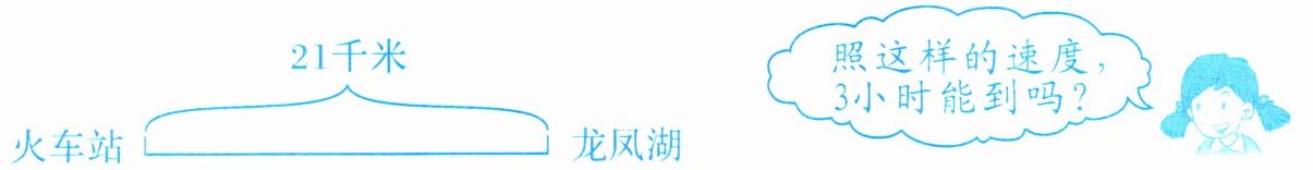 7. 老师带同学们骑自行车从火车站出发去龙凤湖游览,0.5小时骑行了5千米。