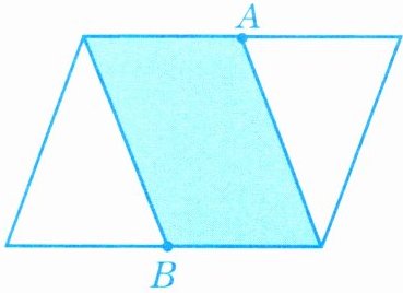 图中大平行四边形的面积是48平方厘米。A、B分别是上下两条边的中点。求涂色部分的面积。