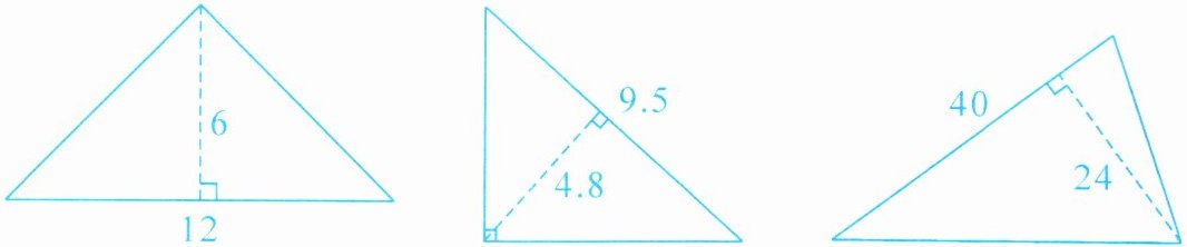(2) 题目考查三角形的面积计算公式,即面积 = 0.5 × 底 × 高。通过已知的面积和高,可以求出底。