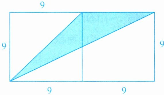 右边空白三角形底为$9 + 9 = 18$分米,高为$9$分米,同理可得其面积为: