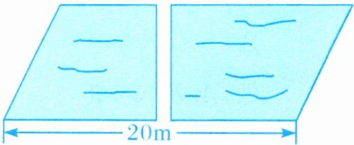 7. 如下图,一块平行四边形的草地中有一条长为8米、宽为1米的小直路。求草地的面积。