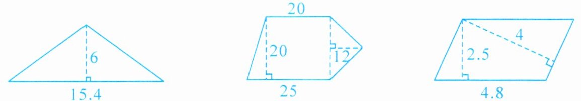 1. 15.4×6÷2=46.2(平方厘米)