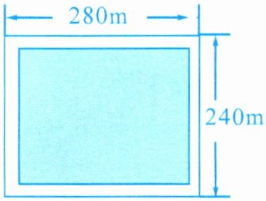 4. 一个长方形绿荫广场(如下图),四周是宽为15米的人行路,绿地面积是多少平方米?合多少公顷?(得数保留整数)