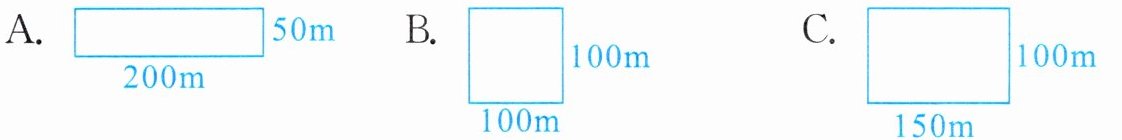 )表示的面积不是1公顷。A. 200m 50m B. 100m 100m C. 150m 100m