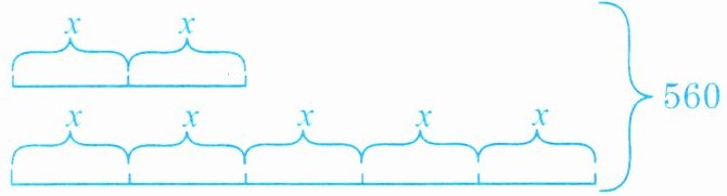 )$ = 5x$$560 - $(