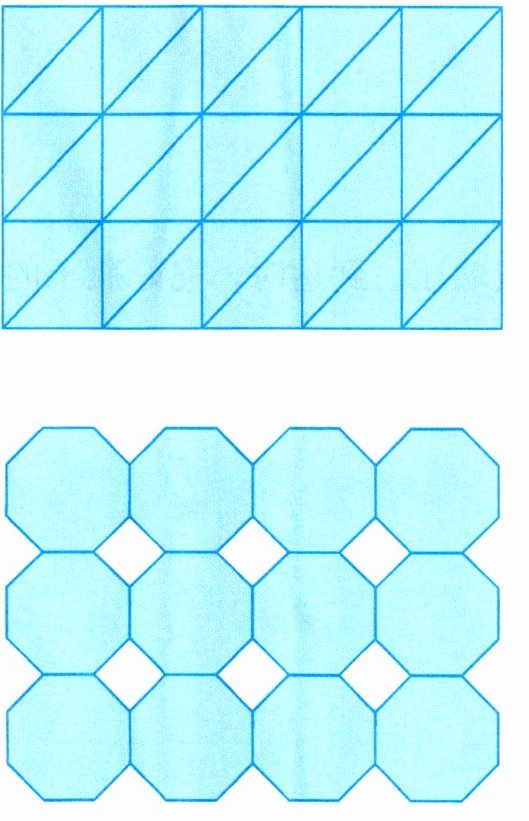 2. 动手做。从七巧板中选出可以密铺的图形,铺满下面的方格。