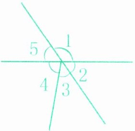 3. 用量角器量出$\angle 1 = $( ),$\angle 4 = $( ),根据这两个角的度数,计算出$\angle 2$、$\angle 3和\angle 5$的度数。(6分)