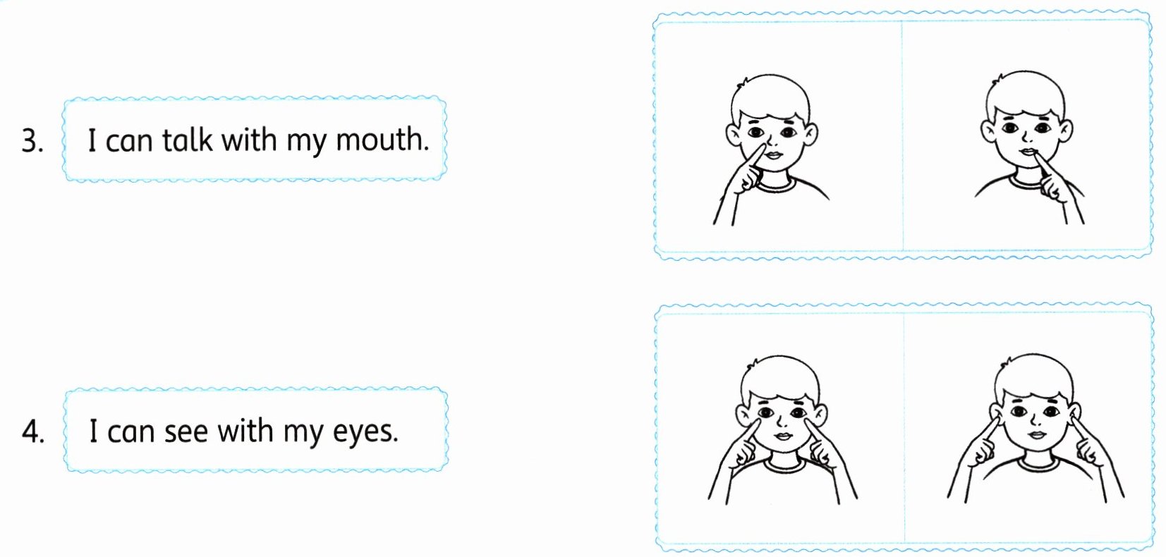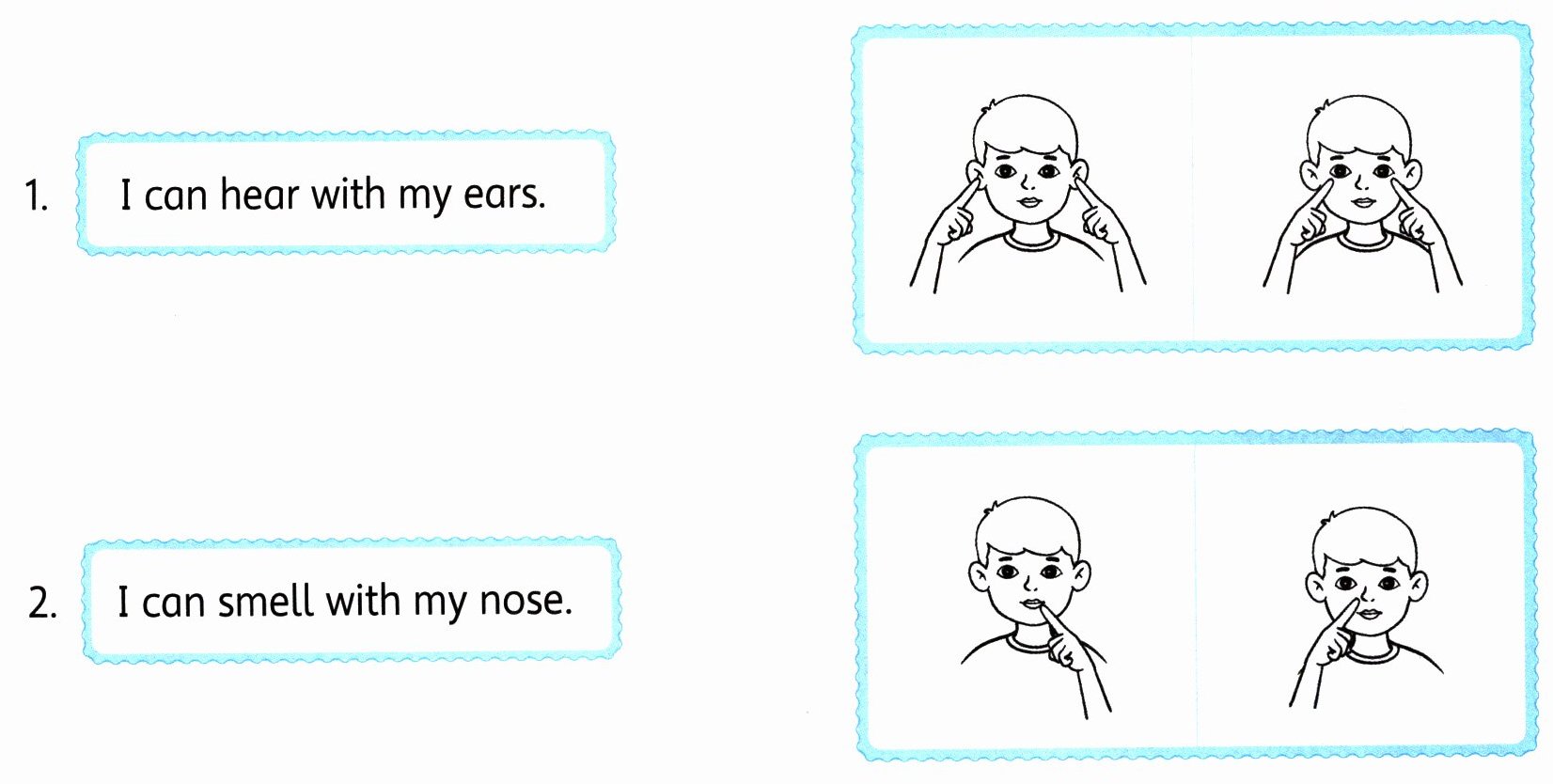 1. ear ;2. nose;3. mouth;4. head;5. eye