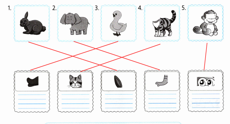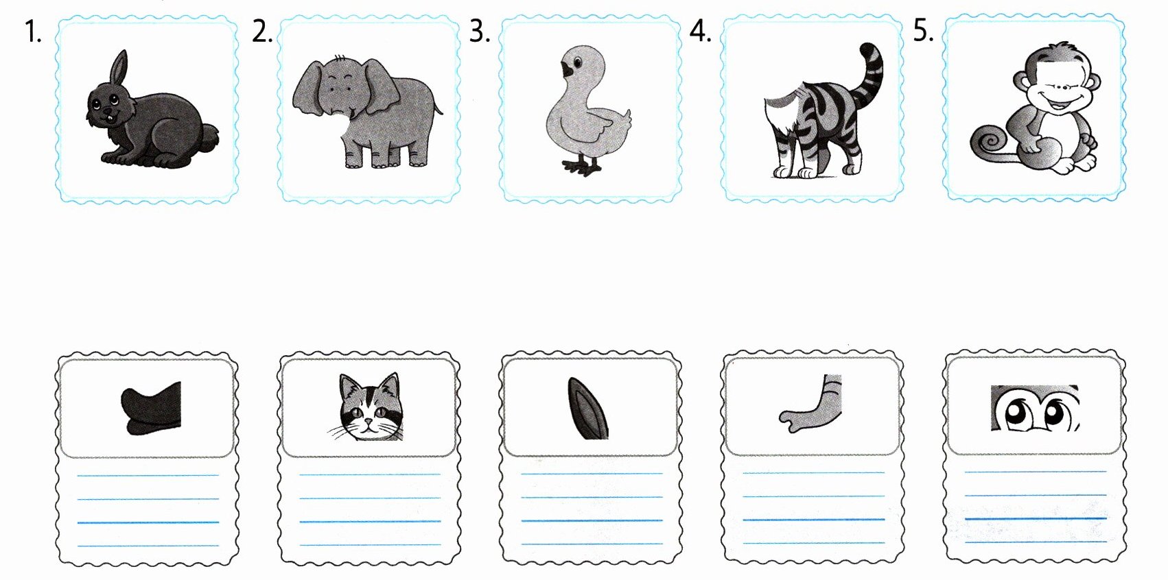 Ⅲ. Match and write. 将动物与它们的身体部位连线,并写出相应的单词。