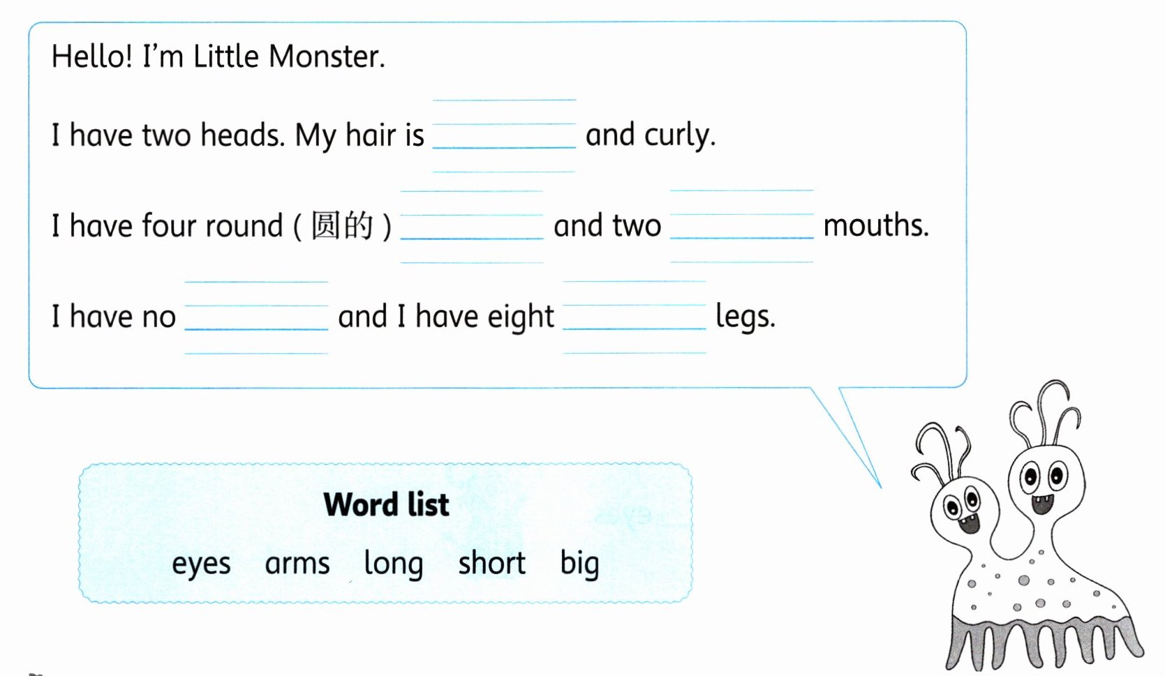 Ⅴ. Look and write. 看一看,根据图片写一写小怪兽的外貌特征。