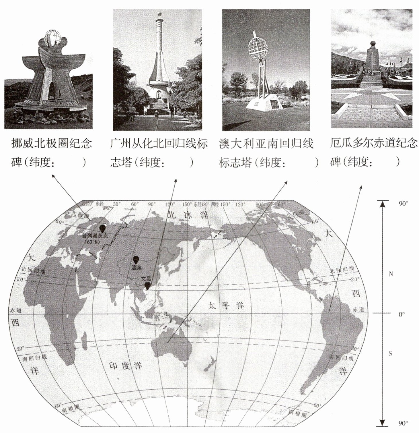 (1)请写出这些纪念碑或标志塔所在纬线的纬度。