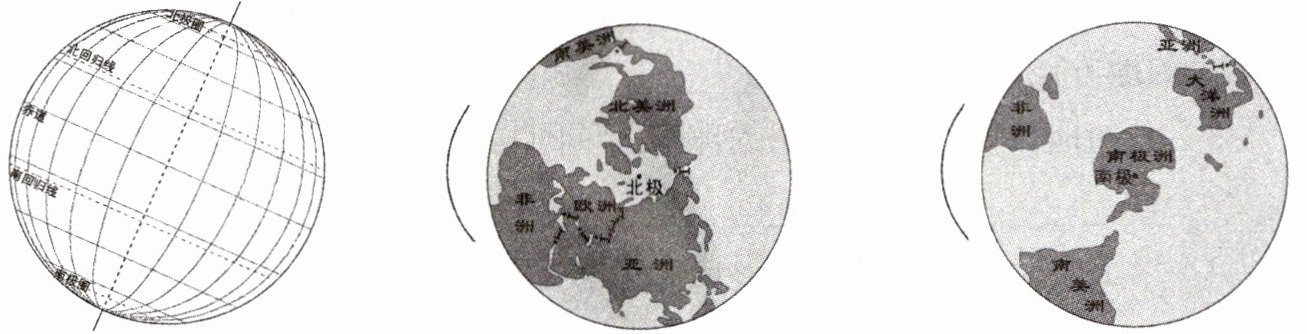 请在下面三幅中用箭头标出地球的自转方向,并完成下列填空。