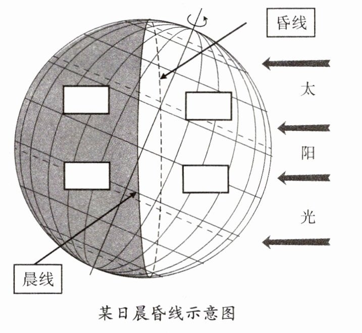 【填图】在下图中的方框内填出白昼、黑夜。