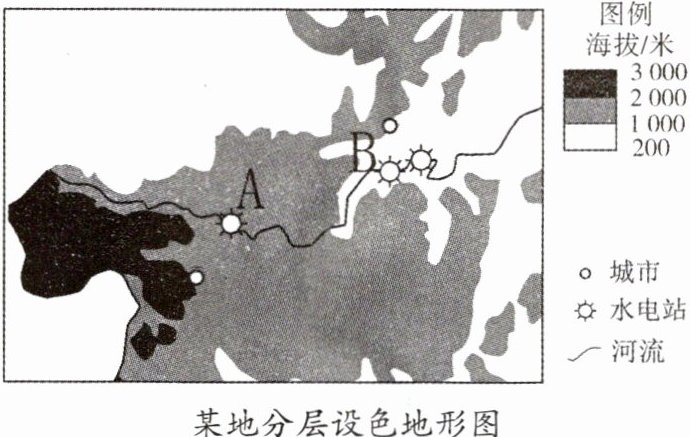 1.读“某地分层设色地形图”,A的海拔高度范围是大于______米、小于______米。A比B的海拔______(填“高”或“低”)。