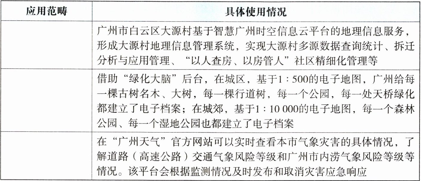 三、地理信息管理、城市绿化管理、气象灾害信息查看与应急响应(答出其中两方面即可)