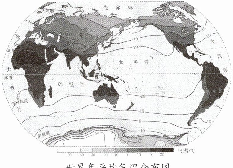 ②热带地区年平均气温在______℃以上,两极地区年平均气温在______℃以下