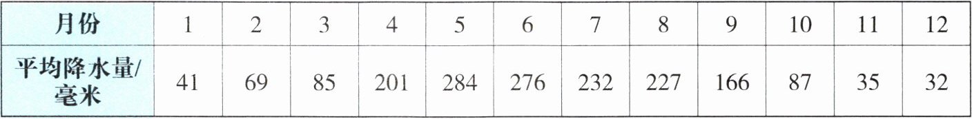 |平均降水量/毫米|41|69|85|201|284|276|232|227|166|87|35|32|