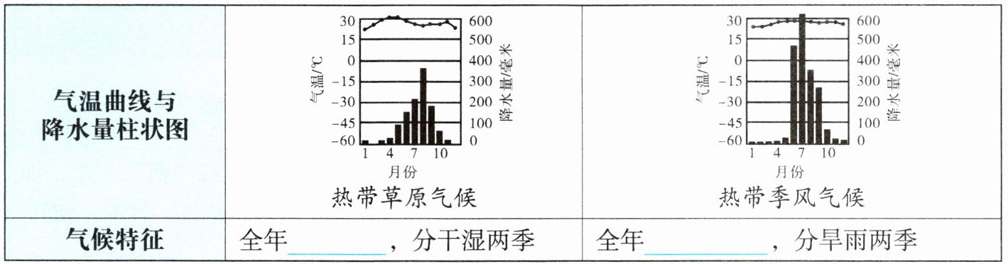 1. 热带气候类型的特征。