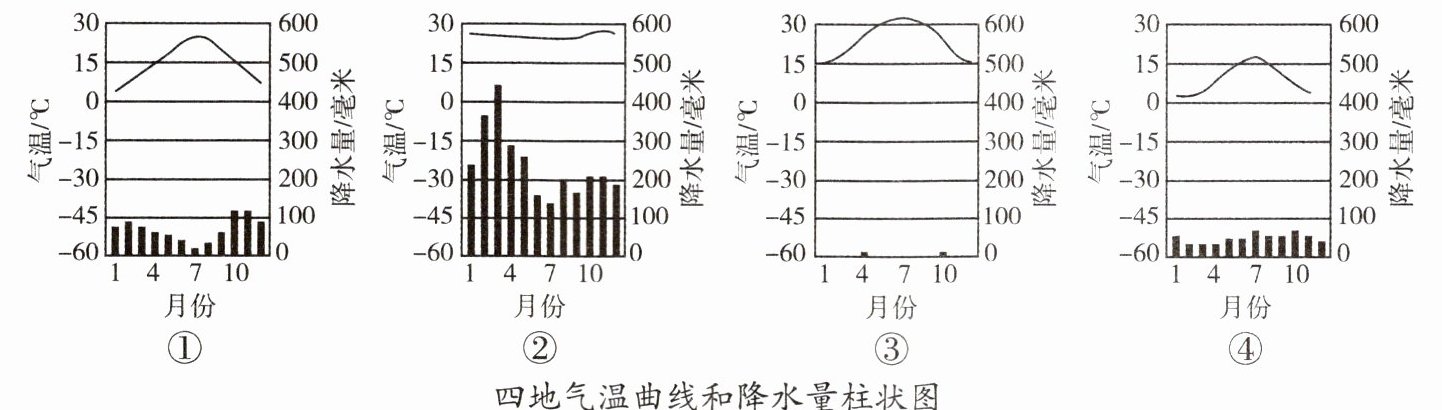 【解析】:本题可根据气候资料图判断气候类型,再结合不同气候类型的分布和特点来逐一分析选项。