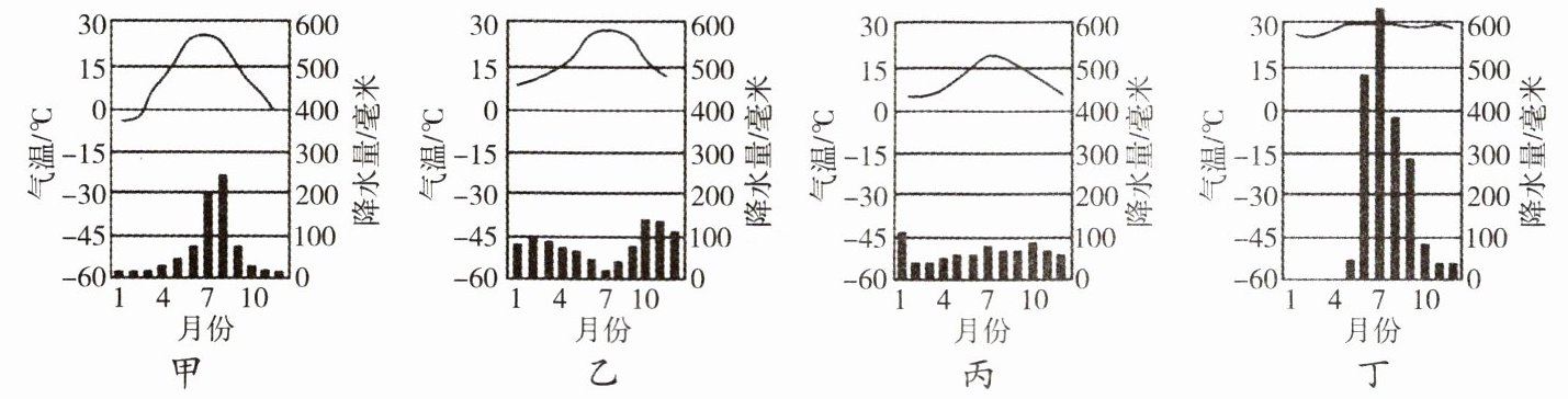 5.下列有关图示甲、乙、丙、丁四种气候的叙述,正确的是( )