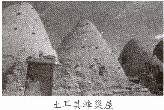 土耳其蜂巢屋是地中海东部沿海的古老民居(见右图),墙体厚度达80厘米,起到保温隔热的作用,其一般由3—4个相连的土塔状建筑构成,土塔状建筑主体用规则的多边形土坯砌成,站在屋内仰望,仿佛置身于蜂窝中。读“四地气温曲线和降水量柱状图”,完成第6题。