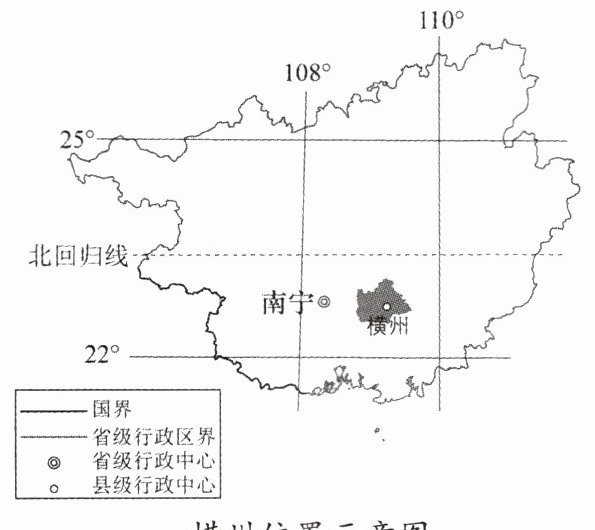 10.茉莉喜光,喜高温,抗寒性差。广西南宁横州素有“中国茉莉之乡”的称号。改革开放后,茉莉花茶市场需求旺,横州开始扩大茉莉种植规模。目前,横州的茉莉鲜花和茉莉花茶产量位居全国第一。读“横州位置示意图”和“南宁的气候直方图”,回答下列问题。