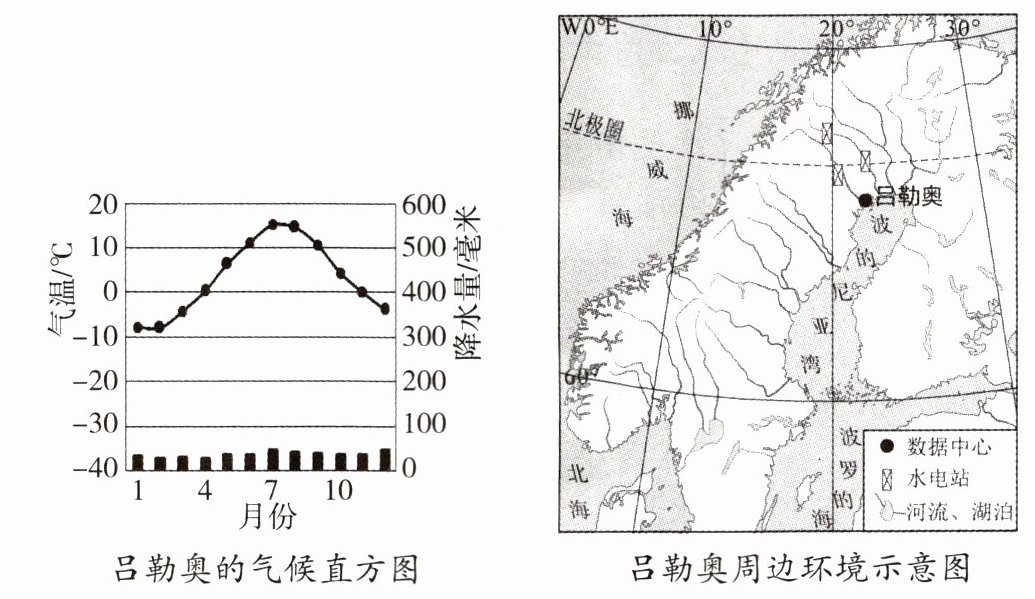 (3)读图并根据材料,简述吕勒奥建设数据中心的有利自然条件。