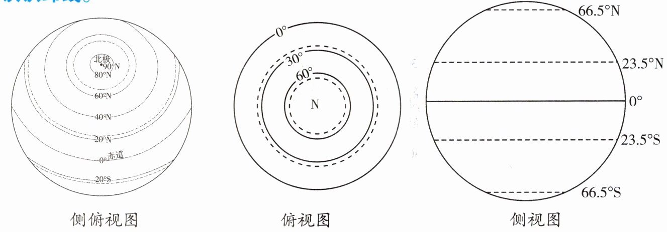 1.请在下面的侧视图中绘制30°S、60°N纬线。