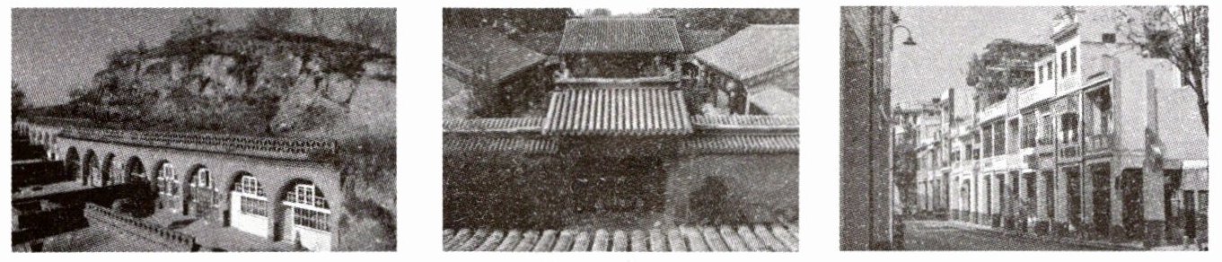【答案】:从左到右依次是:窑洞;四合院;骑楼。