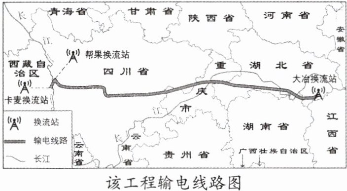 风能、太阳能和水能是重要的清洁能源。2023年2月,我国首个进入川藏高原腹地的特高压工程开工建设。该工程从金沙江上游出发,最终接入华中特高压交流骨干网架。建成后每年可向华中地区输送400亿度清洁电能。右上图示意该工程输电线路。据此完成6—7题。