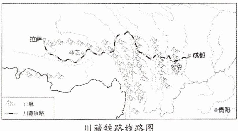 8. 川藏铁路建设最为困难的路段是雅林段(雅安至林芝)。该路段完成后,川藏铁路将全线通车。右图示意川藏铁路线路。结合图文材料,回答下列问题。