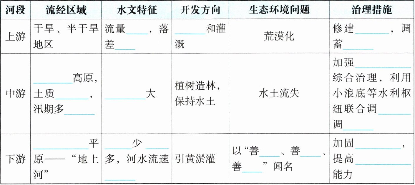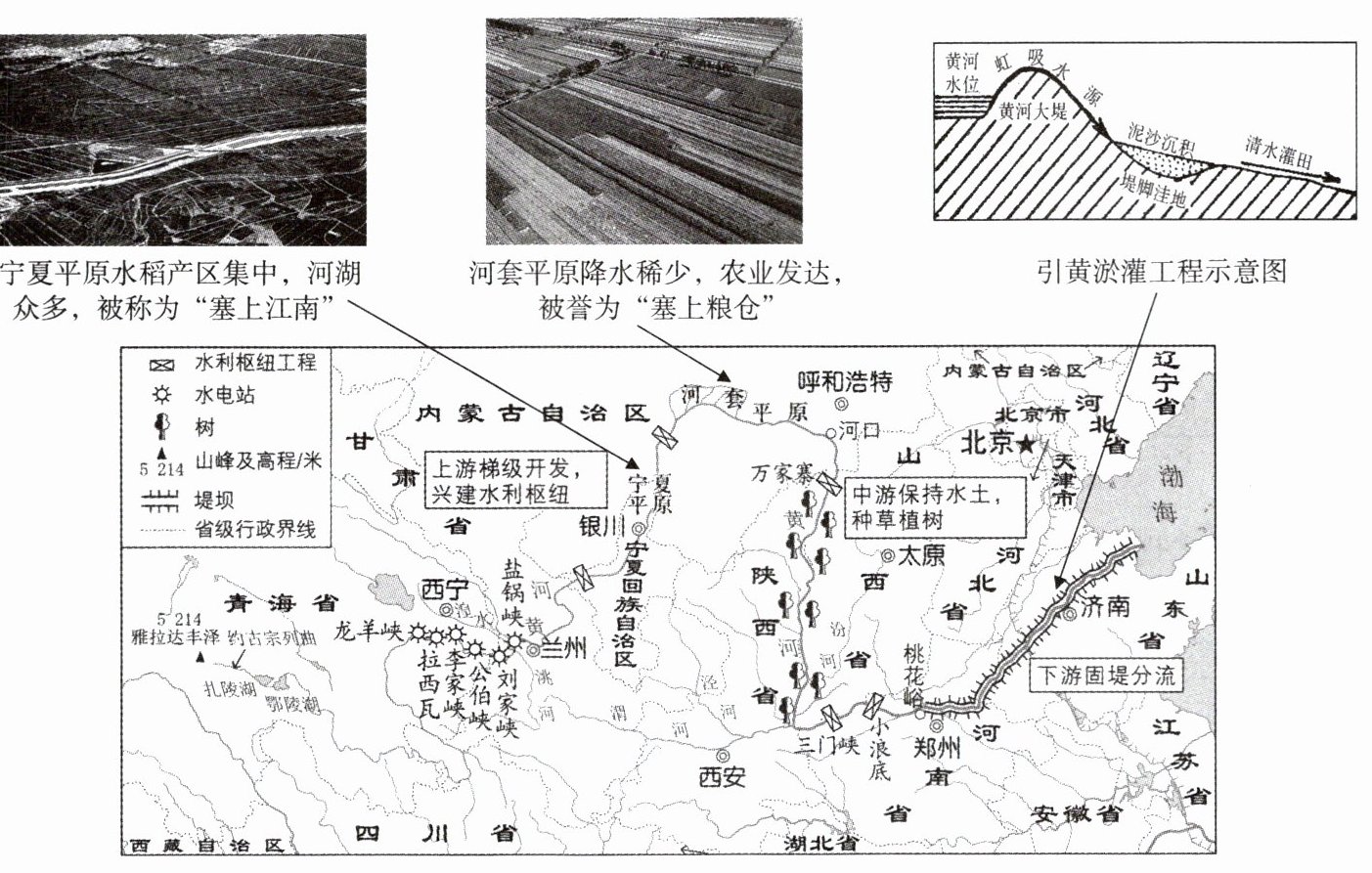 读“黄河各河段的治理和开发图”,回答下列问题。