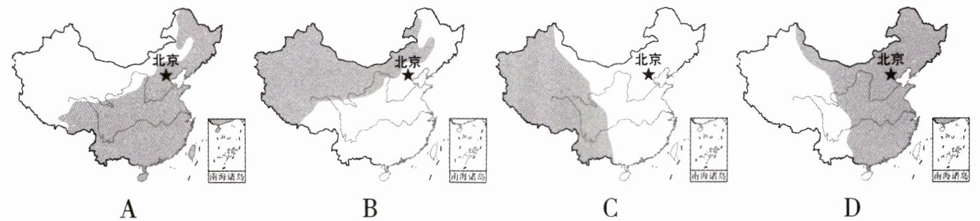 3. 以下阴影部分正确表示我国耕地和林地分布的是()