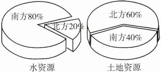 读“我国北方和南方水、土地资源的比较图”,完成6—7题。