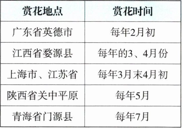 (1)在右上图中把赏花地点与相应的省级行政区连线。