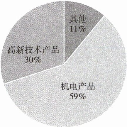 工业制造大国。2. 读“我国2020年各类货物出口额的占比示意图”可知,2020年我国工业产品的出口构成已经转变为以