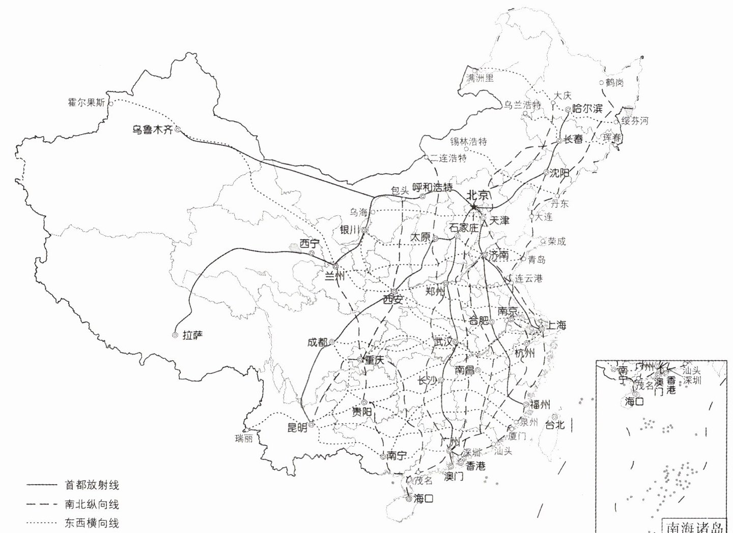 效益。读“中国中长期高速铁路网规划(2016—2030年)”示意图,回答下列问题。