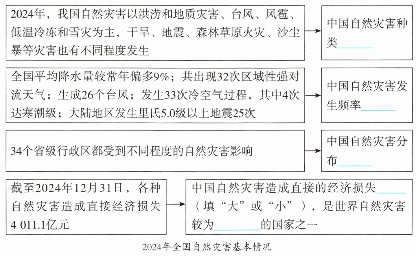 读“2024年全国自然灾害基本情况”,回答下列问题。