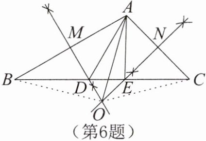 6. 如图,在$\triangle ABC$中,分别作边AB,AC的垂直平分线,且相交于点O,这两条垂直平分线分别交AB于点M,交AC于点N,交BC于点D,E。已知$\triangle ADE$的周长为11cm,分别连结OA,OB,OC,若$\triangle OBC$的周长为23cm,求OA的长。
